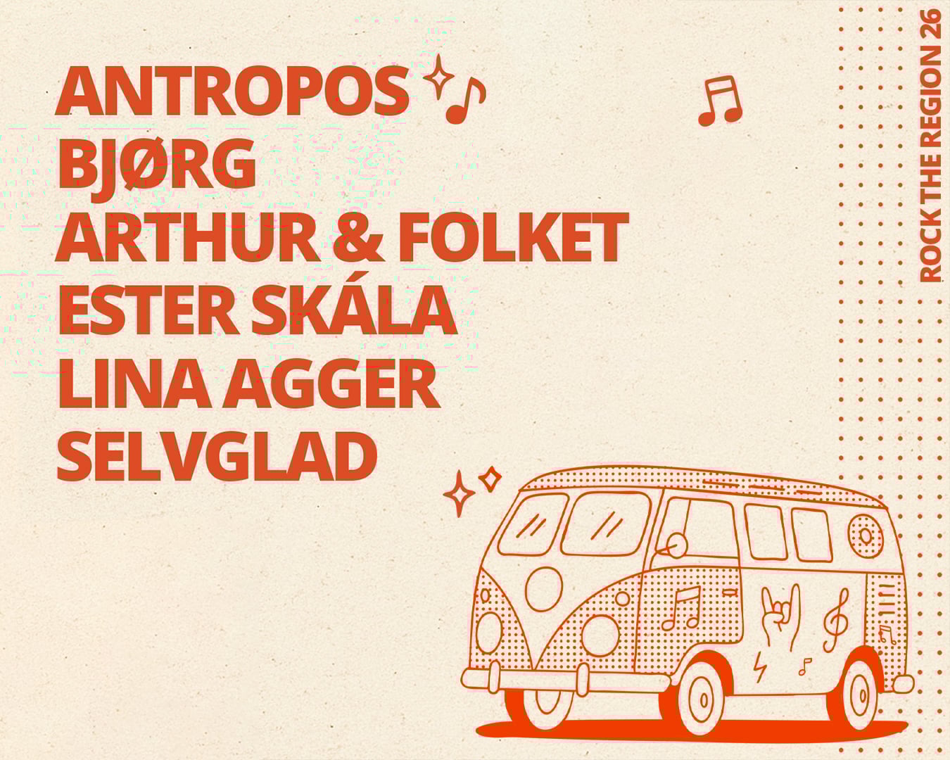 Rock The Region er i foråret 2026 tilbage på landevejen med stop i otte byer i det midtjyske i løbet af april og med afslutning på SPOT Festival d. 1. Maj i Aarhus.